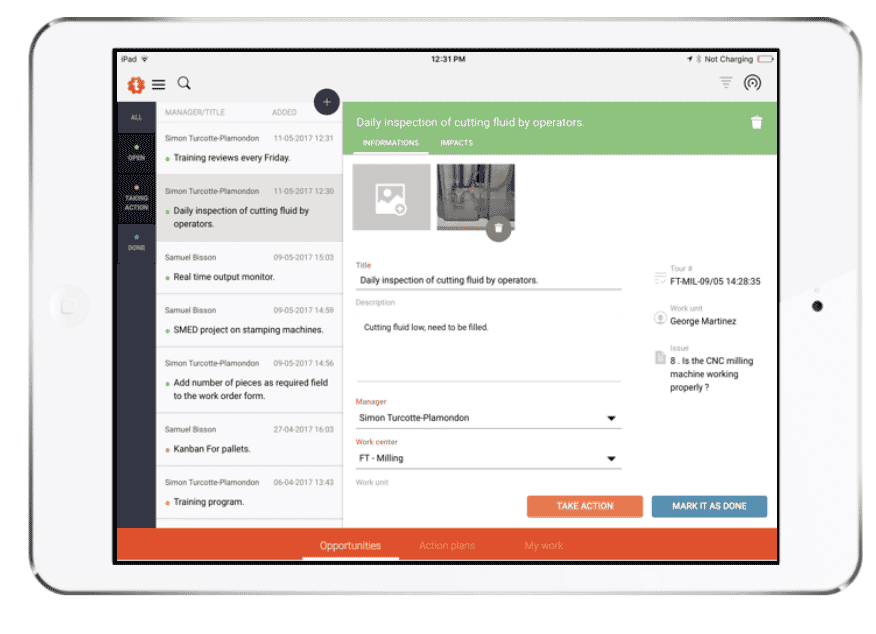 With Lean Manufacturing, we organise Gemba Walks (floor rounds) with a tablet, to continually improve.
