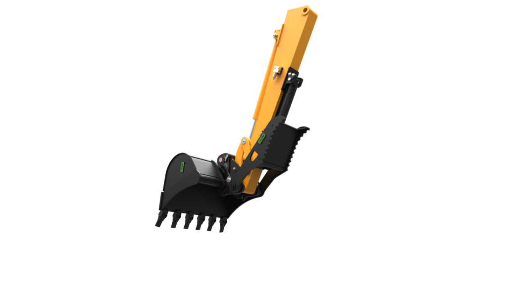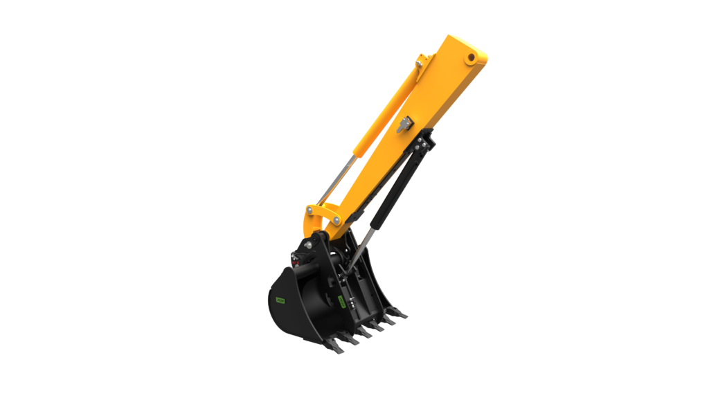 The thumb is the ideal tool for landscaping work. It positions and loads rocks, trunks and branches very precisely. The kinematics retract it under the arm, out of the work zone, when it is not being used.