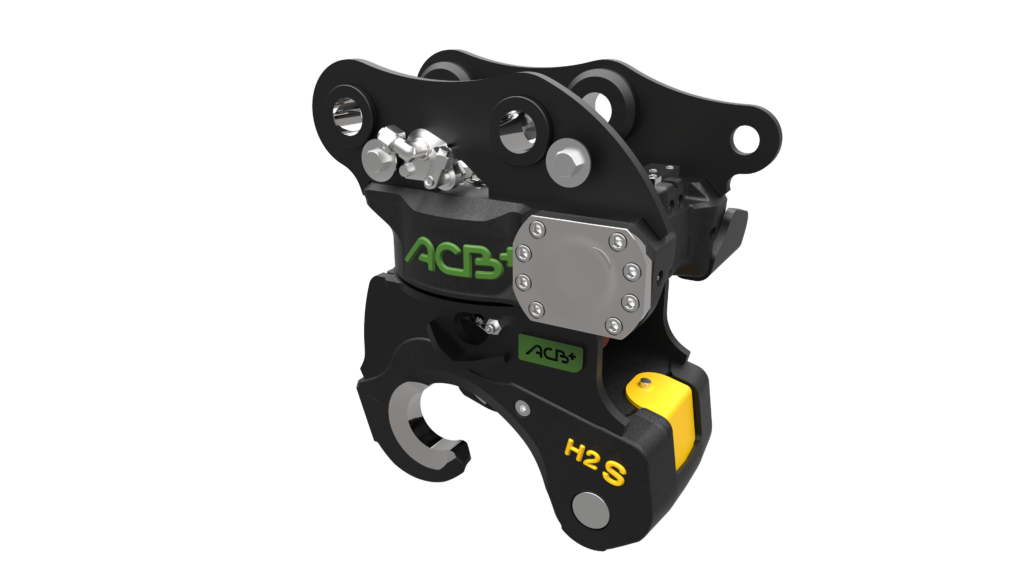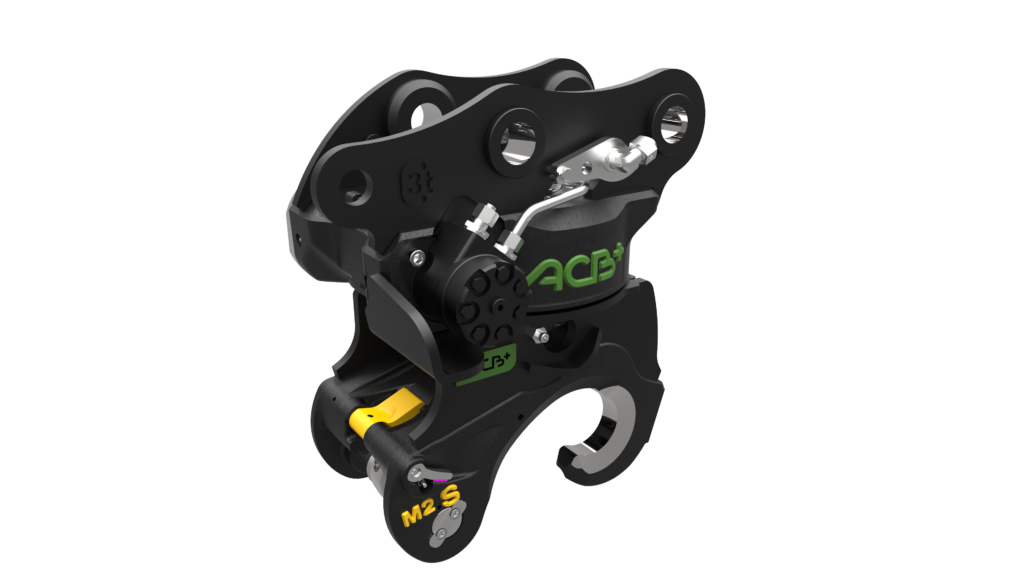 The mechanical M2S and hydraulic H2S ROTO+ R06 orientable coupler is suitable for mini-excavators from 3.5 to 5.5 tons. It is equipped with a lifting ring, designed to be used with the shackles recommended by ACB+.