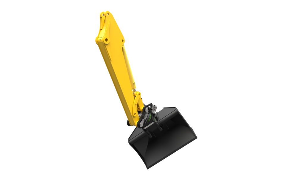 A rotation that tilts the bucket: thanks to the combination of the rotation, the bucket kinematics and the swivel coupler, you can carry out all your embankment and trench filling work.