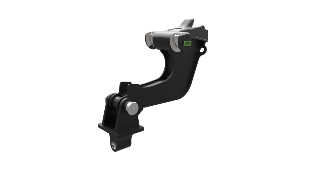 The suspension link is designed to hold clamshell buckets or earth augers at the end of the machine. This interface consists of a suspension link which ensures the connection to the machine by the quick coupler and articulates in lower part a suspension.