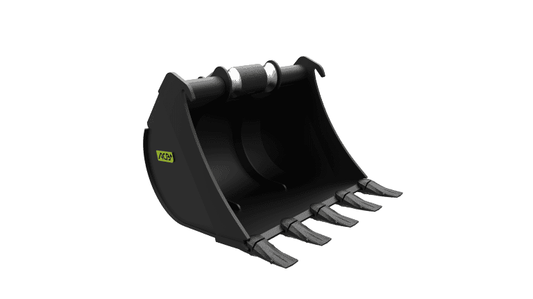 - The CREATION Trapezoidal bucket often has a greater opening angle and is designed to dig a profiled ditch. The bucket profiled sides allow the tool to turn without bottoming in the ditch being dug.