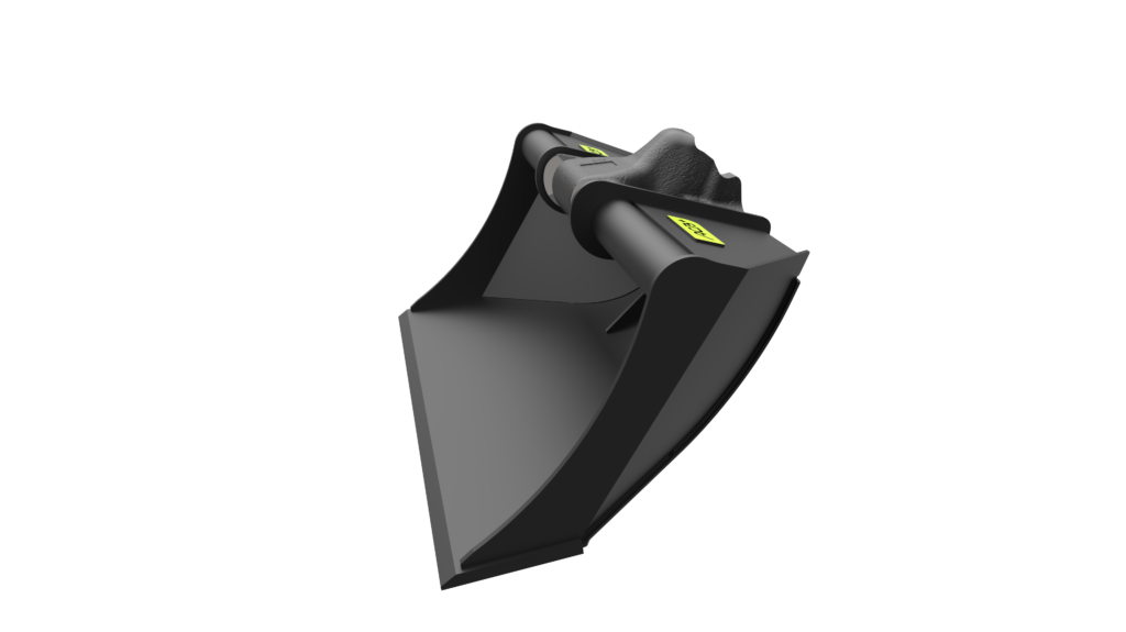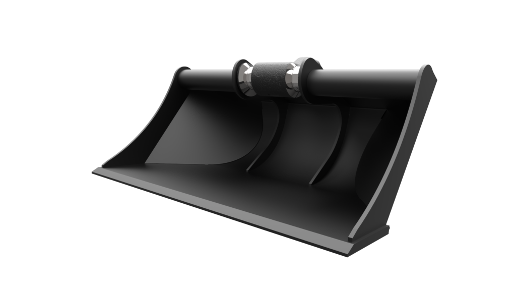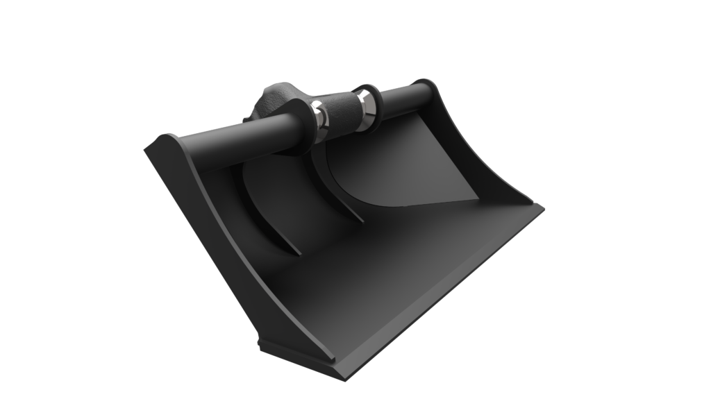 The universal ditching bucket is a scraper bucket specially designed for orientable couplers and tilting rotary scrapers. The bevelled sides avoid bottoming during excavation work and allow working closer to pillars, nozzles and other work site obstacles. They also allow optimum tipping through the bucket corners, when filling trenches for example.