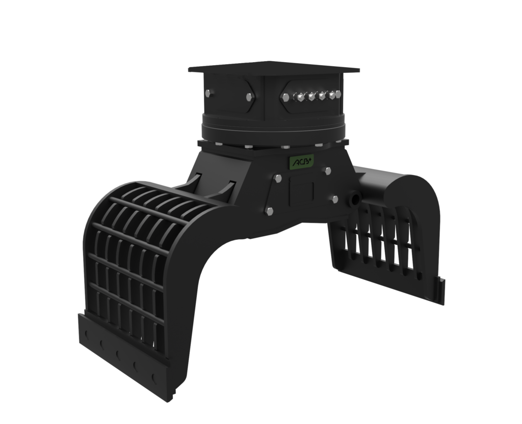 The closing of the sorting grapple is ensured by a horizontal cylinder protected by the main casing of the grapple. The supply hoses are also protected by this casing.