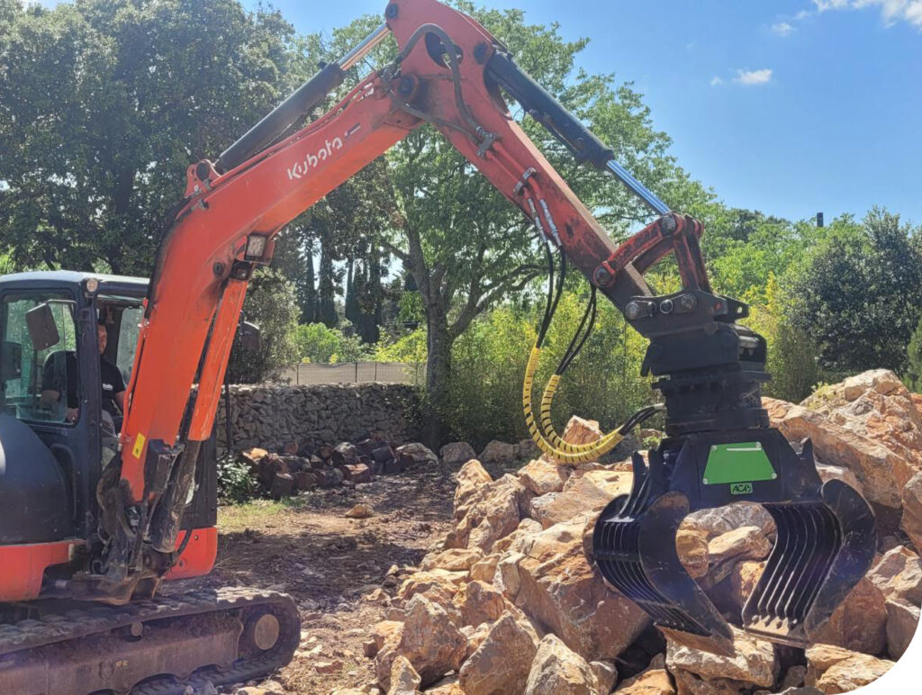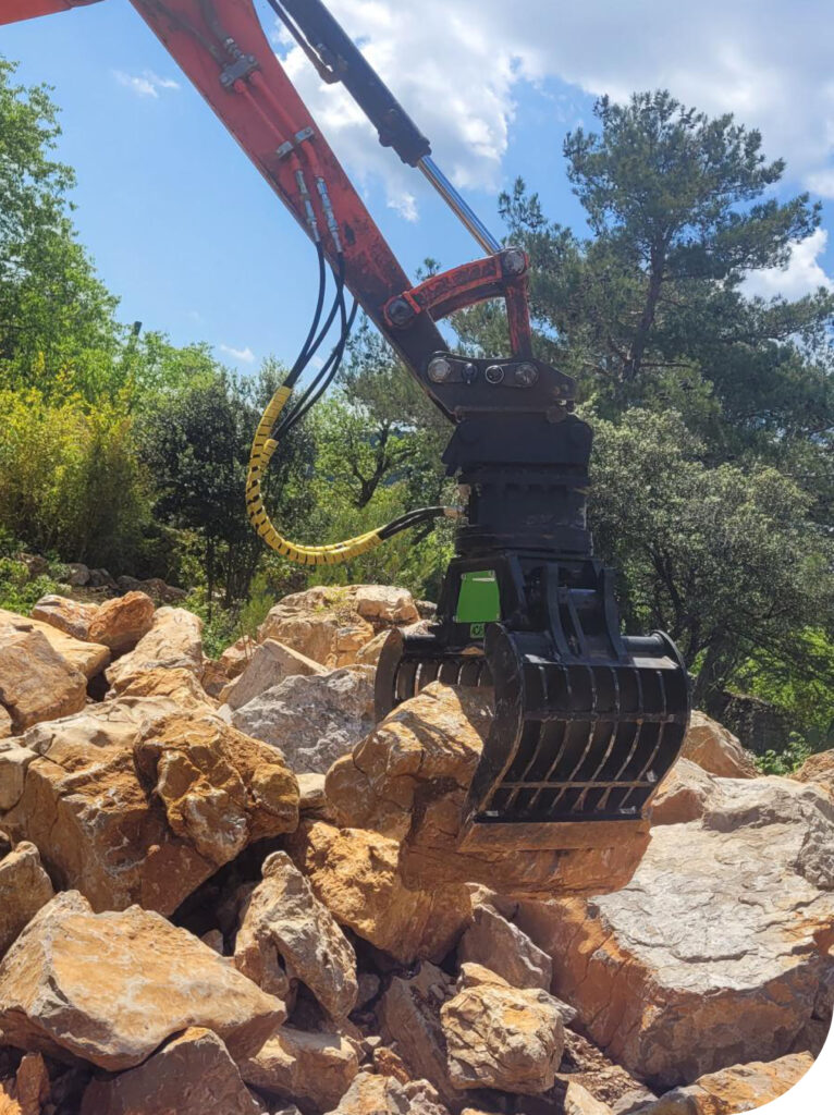 Once the rock is firmly grasped, the excavator lifts and moves it to its final destination. The rotating sorting grapple allows for precise positioning, even in hard-to-reach areas, thanks to its rotational function. The operators can adjust the angle and position of the rock according to project requirements, thus ensuring seamless integration into the existing environment.