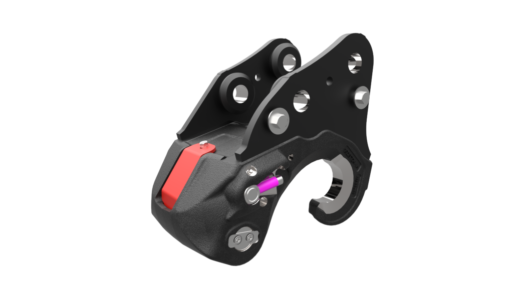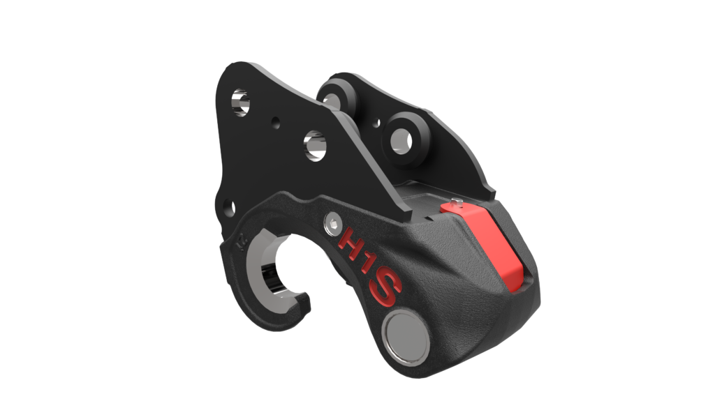Pour le coupleur hydraulique : Le déverrouillage avec une simple pression sur le boitier de commande dans la cabine permet le décrochage de l’outil. En cas de problème hydraulique, le coupleur H1S peut être déverrouillé avec une clef de secours, assurant une continuité de service