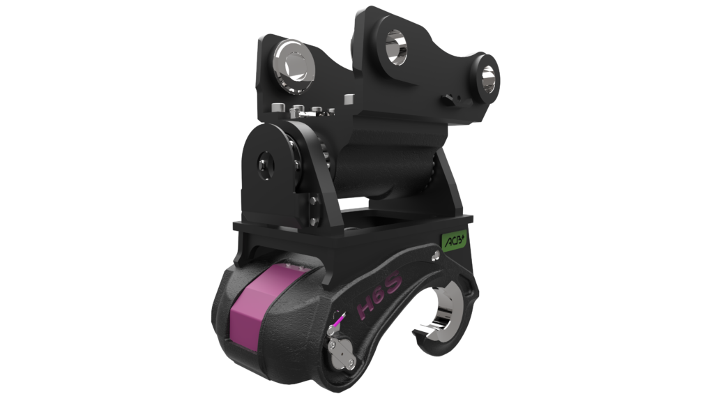 Le coupleur inclinable hydraulique à moteur H6S convient aux mini pelles de 15 à 23 tonnes. Il est pourvu d’un anneau de levage intégré prévu pour être utilisé avec les manilles préconisées par ACB+.