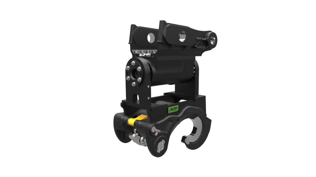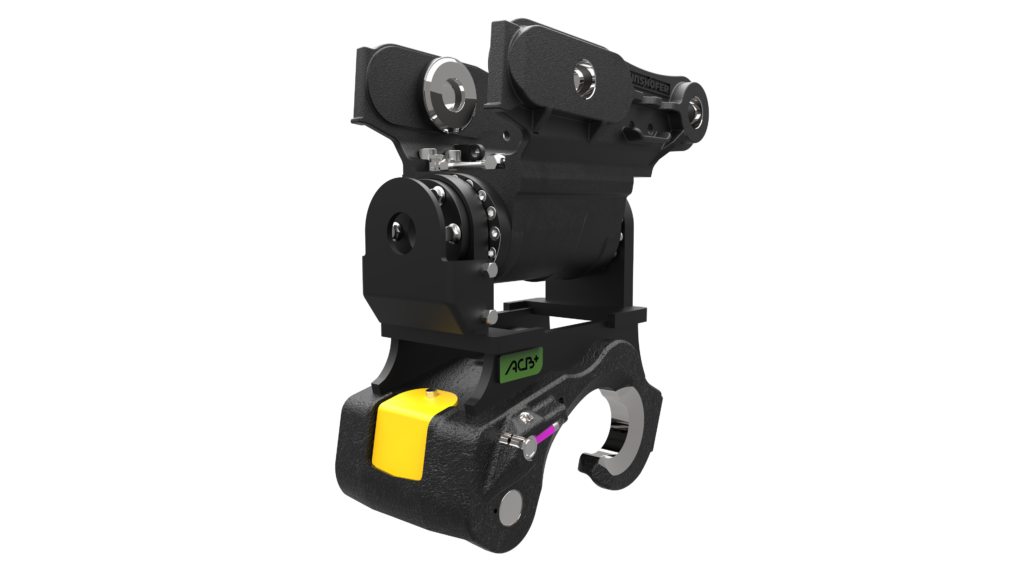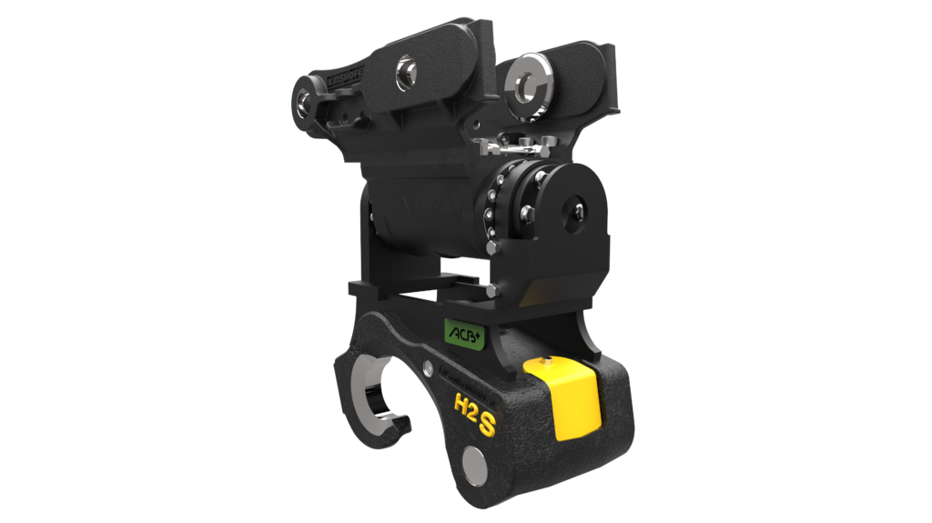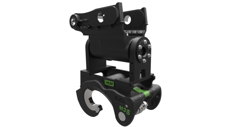 Le coupleur inclinable mécanique M2S ou hydraulique H2S à moteur convient aux mini pelles de 3,5 à 5,5 tonnes. Il est pourvu d’un anneau de levage intégré prévu pour être utilisé avec les manilles préconisées par ACB+.