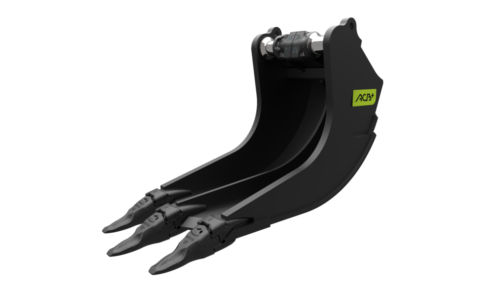Godet étroit au profil ouvert et effilé et à la lame très avancée, le godet derocteur est l’outil idéal pour la purge des parois rocheuses, voire des travaux en tunnel. Les blocs extraits seront aisément déplacés grâce à la partie plate de son profil.